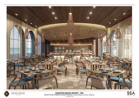 Shantira Beach Resort & Spa, reflects a sense of modernity in an exclusive beach life style, while keeping in mind the local heritage. The main concept of the design was to develop a decorative pattern from the Resort logo as symbol of the « new memory, the new heritage » The project is all about the beach, the ocean. A metaphorical expression through the pattern, taking its origin from the water element and spread itself through the sand. The beach club offer 4 venues = all day dining, lounge, fine dining restaurant and roof top bar. It comes in complementary service of the exclusive 70 villas set up below 2 large condominiums. The Beach club will open by the end of 2022.