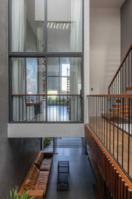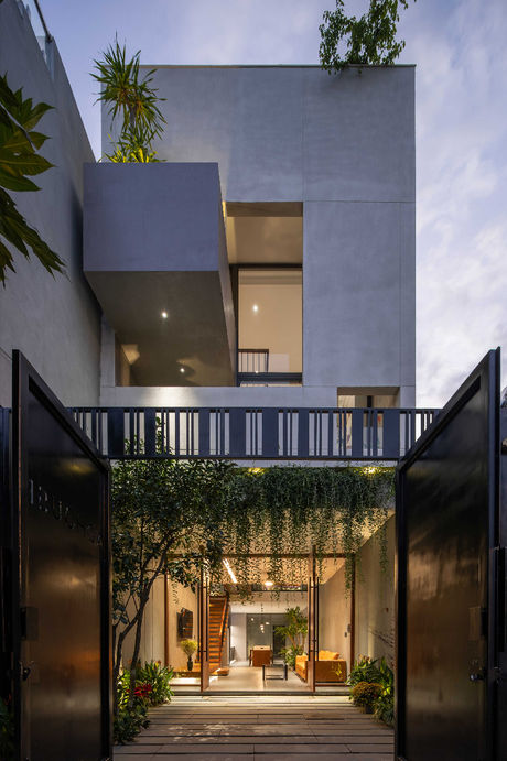 The construction site of AD House is also in the context of houses located close together in the newly developed urban area, presenting a difficult problem for the design of a completely "open" and "breathing" building. connection between people and people, between people and nature, between nature and the harmonious whole of the city in both vertical and horizontal directions.
